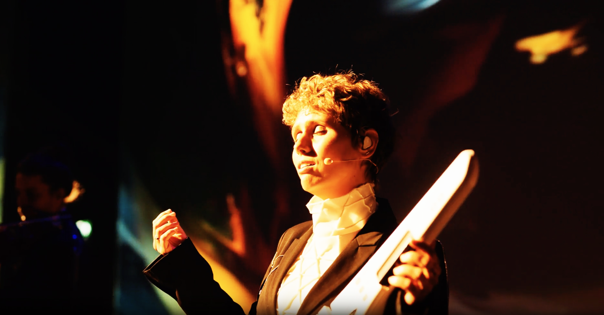 As the conductor guided the orchestra through tension and release, the AI responded simultaneously, generating visuals shaped by the same musical input. Two distinct intelligences engaged with one shared source, each interpreting through its own lens.