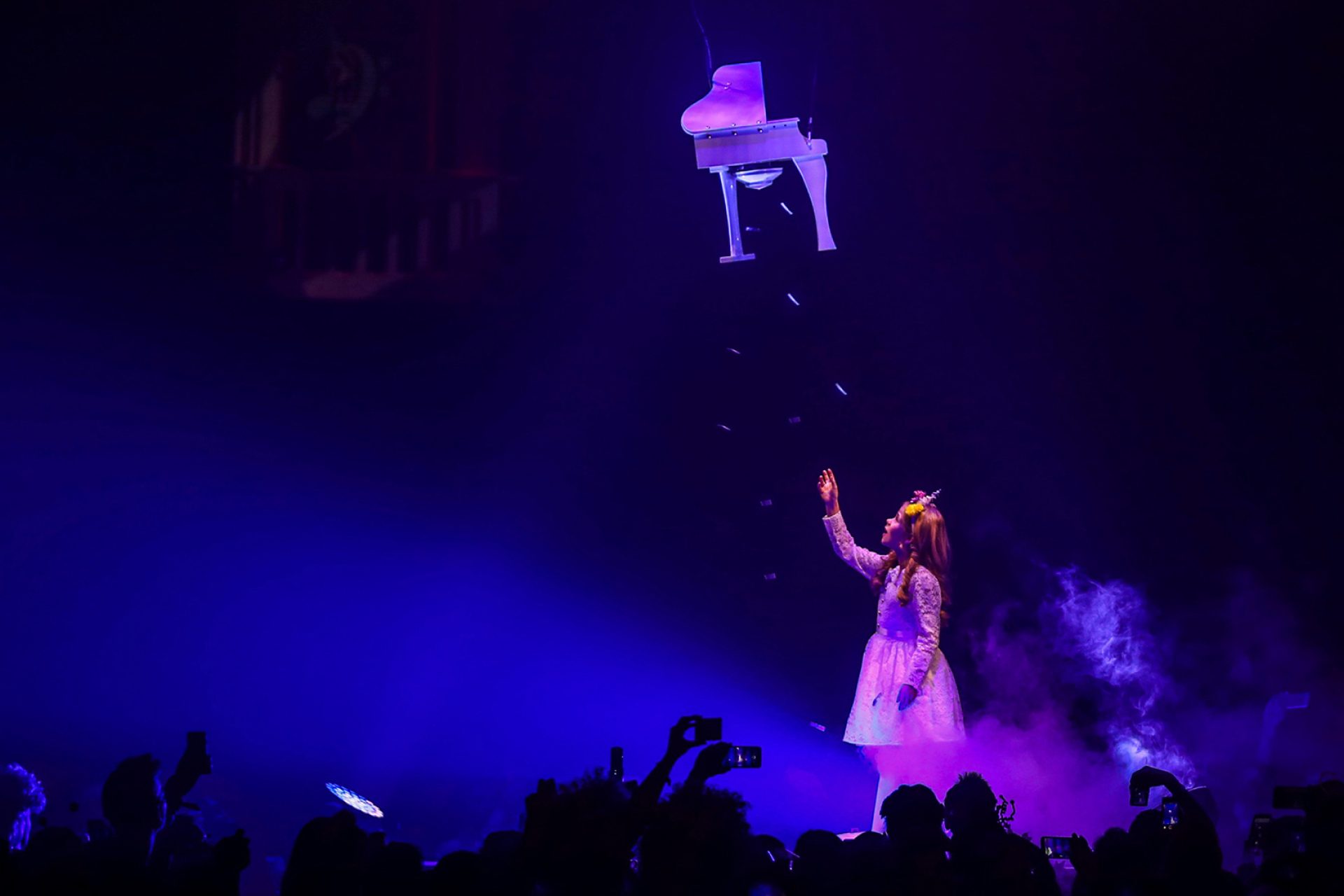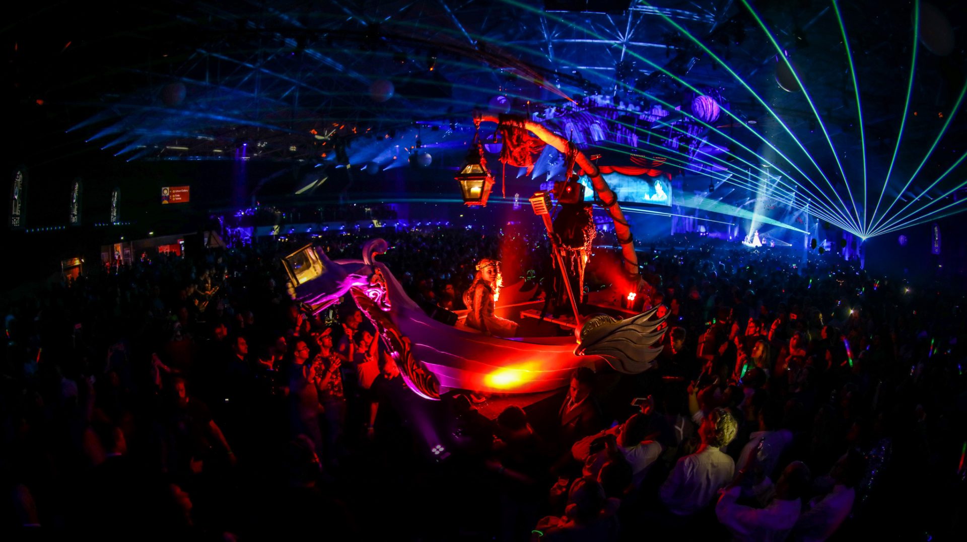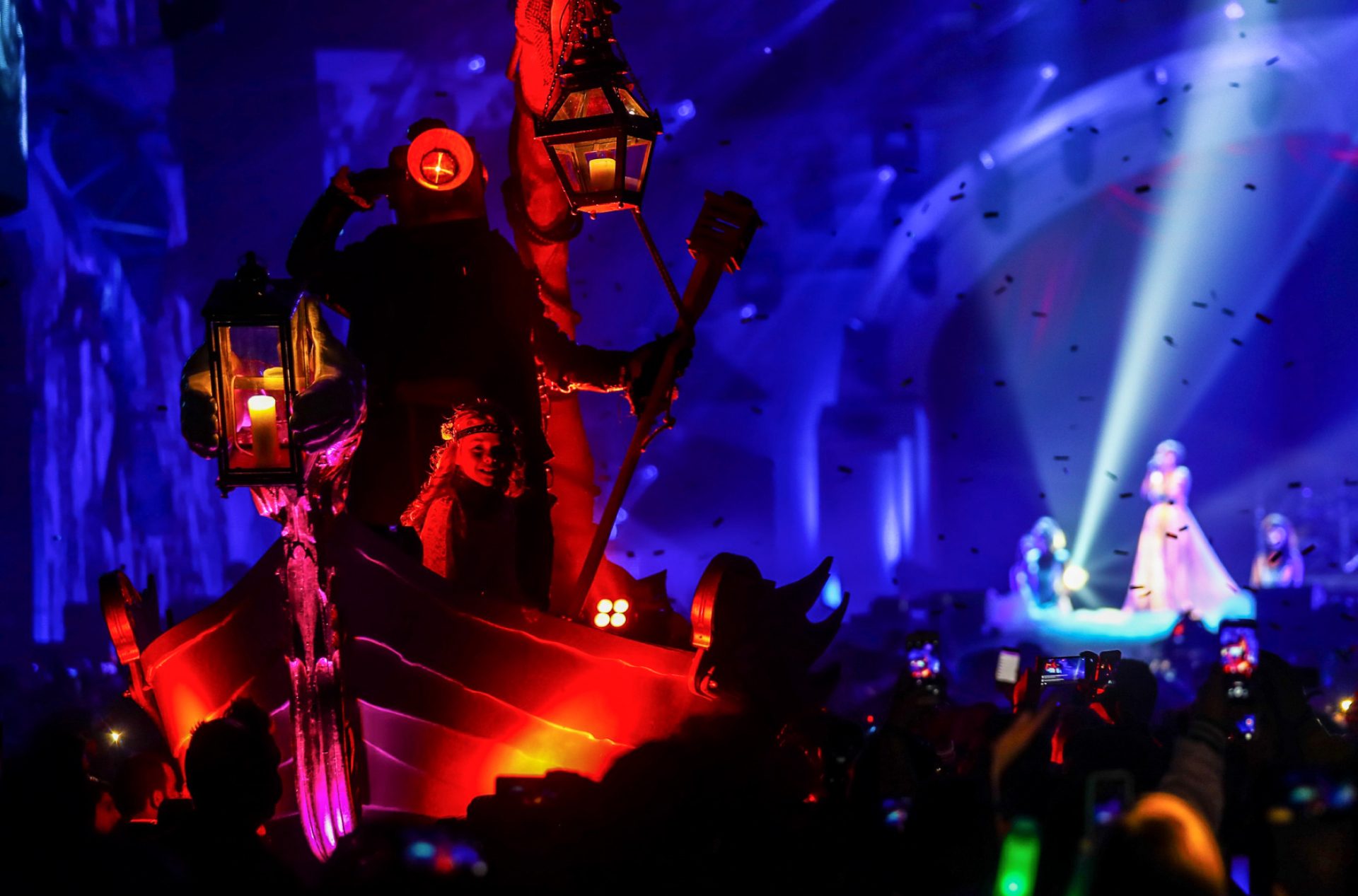 The audience as an ocean. Lights dim low, lasers turn blue, the fog gently makes its way and the audience turns silent. With a dreamy whisper of a melody, a boat with two passengers enters the venue like an orb in the night. Their journey from the audience to the stage represents the adventure for the lost imagination. As they sail over the audience, the world slowly changes. Ready for the next stage of this exploration.